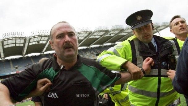 Sludden was repeatedly jostled and shunted as he attempted to leave the field following the final whistle in the Leinster final, which Meath won by two points (1-12 to 1-10) after Joe Sheridan’s hotly-contested goal when, in trying to kick the ball into the net while lying on the goal-line, he effectively threw the ball over the line.
