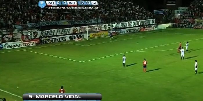 Marcelo Vidal of Independiente hit the headlines in Argentina this weekend after he smashed in this long-range free kick in the 87th minute of a game against Patronato in the Primera B Nacional, and it is quite simply incredible.