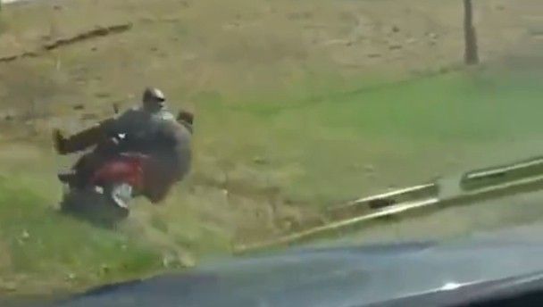 Thankfully, instead of falling over and smashing their unprotected heads off the pavement, the two lads veer over to the grassy side of the road and simply keel over in a ditch.