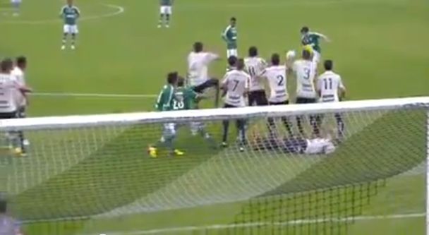 Figueirense hosted Palmeiras in the Brazilian Campeonato Série B at the weekend and after giving away a free-kick in a dangerous position, set about covering every eventuality from the set-piece.