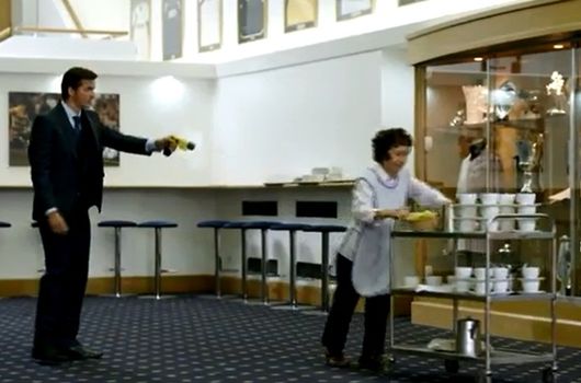 Suggesting that ‘biting’ was so last season, their latest advert suggests that ‘tasering’ could be the latest shameful craze to enter the Premier League this season and proceeds to show a number of fictional scenarios in which that tactic might be adopted, including Joey taking his anger out on a defenceless tea lady, James Bond style, at the finish.