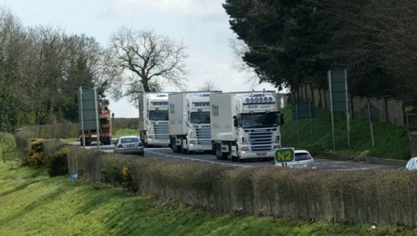 Those of you on the M7 / M50 route from Naas to Swords last week, were probably treated to this sight; 20 shiny new Volvo FH460’s making their way from Irish Commercials Volvo in Naas to Dixon International in Swords. In a tough economic climate like this, it’s good to see that someone out there is investing so much and in such a cool fashion.
