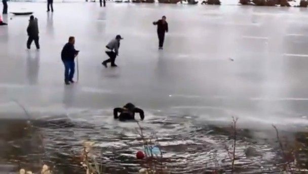 A man over in the US fell into a frozen lake on Christmas day, as did eight other people who were trying to rescue him.