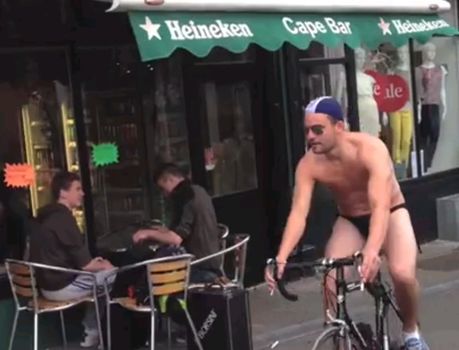 The mostly-naked cyclist in question in the video above was Gavin Kinsella, who completed the challenge of cycling through the streets of Wexford wearing only a pair of speedos to help raise awareness for a new, innovative fundraising platform called icharityu.