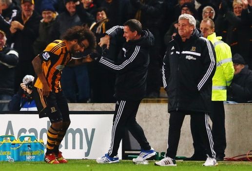 He finally broke that duck with the fourth goal in Hull’s 6-0 spanking of Fulham at the KC Stadium and having promised that he would cut what had become what was quite a thick and heavy afro as soon as he did, he didn’t waste any time when letting one of the Hull backroom staff go at it and get rid of a fairly big chunk immediately afterwards.